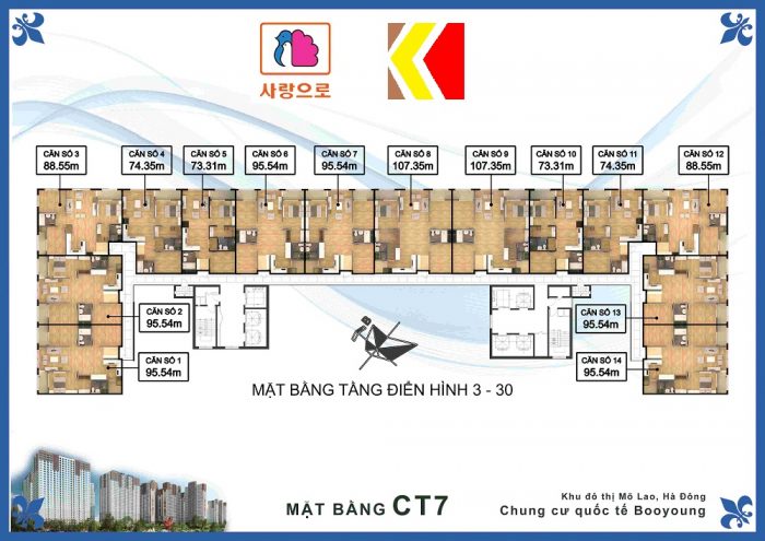 - Diện tích căn hộ : 55m2, 74m2, 76m2, 95m2 thiết kế 02 đến 03 phòng ngủ